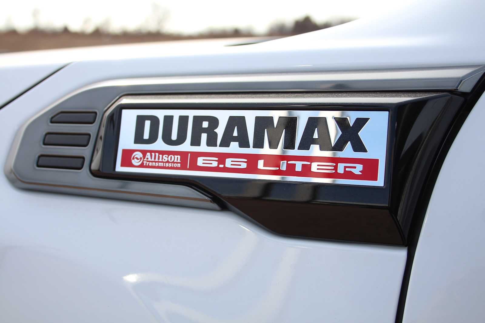 ENGINE, DURAMAX 6.6L TURBO-DIESEL V8, B20-DIESEL COMPATIBLE (470 hp [350.5 kW] @ 2800 rpm, 975 lb-ft of torque [1322 Nm] @ 1600 rpm) (Includes (K05) engine block heater.), AT4 PREMIUM PLUS PACKAGE includes (PDO) AT4 Preferred Package, (CF5) power sunroof, (CWM) Technology Package and (VXW) AT4 high clearance step, LPO, MAX TRAILERING PACKAGE includes 3500 HD Frame, 3500 HD Leaf Springs, 12" Rear axle, 3500 HD Shock Package, (CGN) spray-on bed liner and (Z6A) Gooseneck / 5th Wheel Prep provisions with bed stamped holes and caps, TECHNOLOGY PACKAGE includes (DRZ) Rear Camera Mirror and (UV6) Multicolor 15" Diagonal Head-Up Display, AT4 PREFERRED PACKAGE includes (UG1) Universal Home Remote, (A48) rear sliding power window and (U01) Roof Marker Lamps, AUDIO SYSTEM, 13.4" DIAGONAL PREMIUM GMC INFOTAINMENT SYSTEM WITH GOOGLE BUILT IN APPS SUCH AS NAVIGATION AND VOICE ASSISTANCE includes color touch-screen, multi-touch display, AM/FM stereo, Bluetooth® streaming audio for music and most phones; featuring wireless Android Auto® and Apple CarPlay® capability for compatible phones (STD), TRANSMISSION, 10-SPEED AUTOMATIC. GMC AT4 with Summit White exterior and Jet Black with Kalahari accents interior features a 8 Cylinder Engine with 470 HP at 2800 RPM*.