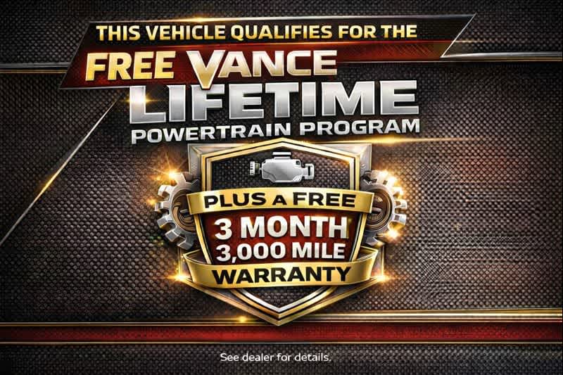 This Vehicle Qualifies For A Free Lifetime Powertrain Protection Program Available Only At Vance Auto Group.