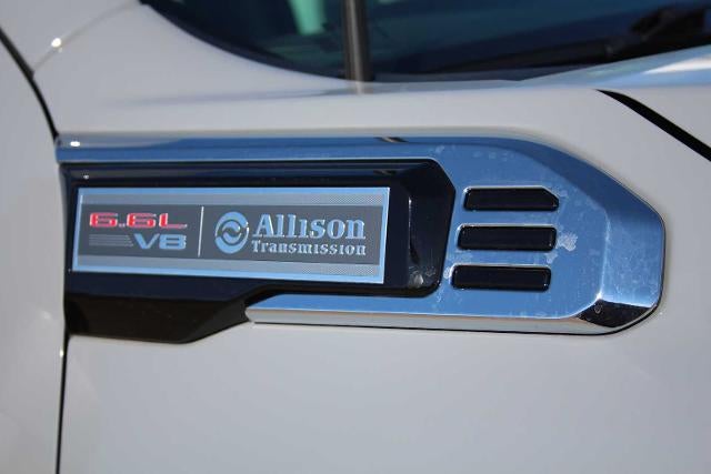 AUDIO SYSTEM, GMC INFOTAINMENT SYSTEM WITH 7 DIAGONAL COLOR TOUCH-SCREEN AM/FM stereo with seek-and-scan and digital clock, includes Bluetooth® streaming audio for music and select phones; featuring wireless Apple CarPlay® and Android Auto® capable (STD), ENGINE, 6.6L V8 with Direct Injection and Variable Valve Timing, gasoline, (401 hp [299 kW] @ 5200 rpm, 464 lb-ft of torque [629 N-m] @ 4000 rpm) (STD), TRANSMISSION, ALLISON 10-SPEED AUTOMATIC (STD). GMC Pro with Thunderstorm Gray exterior and Jet Black interior features a 8 Cylinder Engine with 401 HP at 5200 RPM*.